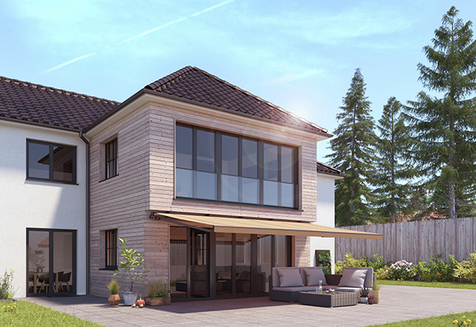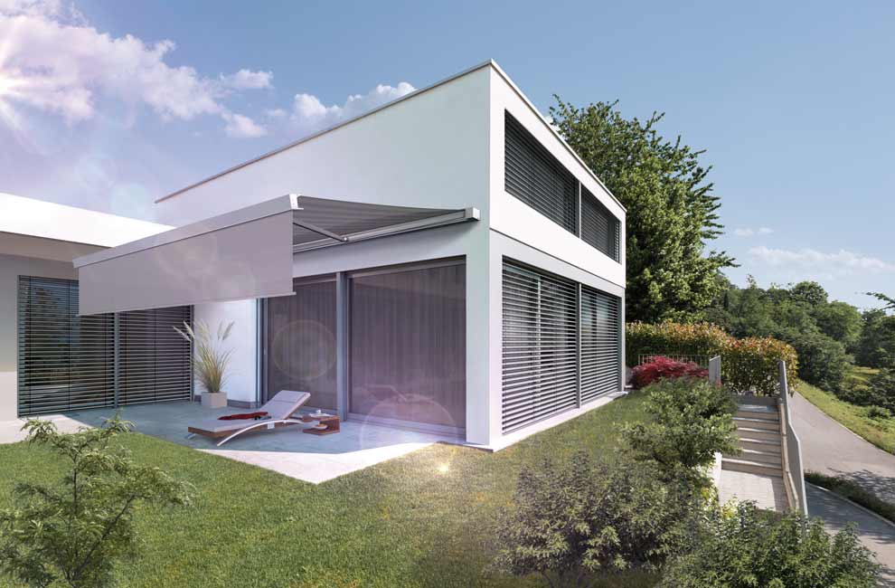 Bei der Kassettenmarkise verschwindet das Tuch vollständig in einem unauffälligen Kasten. Diese Variante gliedert sich besonders dezent ins Gesamtgebäude ein.
